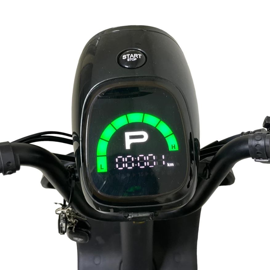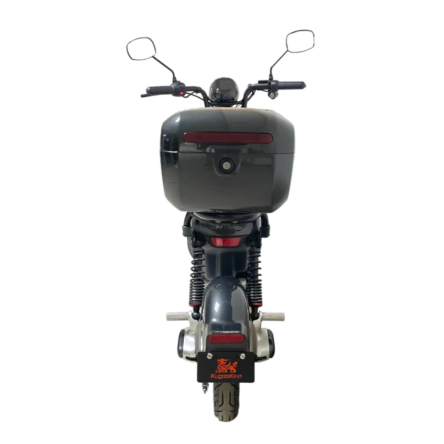 Популярность и востребованность электроскутера связана с привлекательным эстетическим дизайном, качественной начинкой и мощными техническими характеристиками. Электробайк с мощностью мотора 1000 Вт, весом 51 кг и грузоподъемностью в 150 кг способен развивать скорость до 50 км/час и преодолевать на одной подзарядке 55 км пути. Обратите внимание на комплектацию. Она максимально полная. Техника оснащена зеркалами обозрения, большой светодиодной фарой, спидометром, сигнализацией, подножкой для парковки. Практический опыт и отзывы пользователей доказывают безопасность эксплуатации и комфорт пользования электробайком.