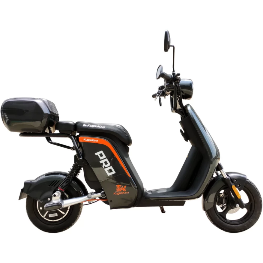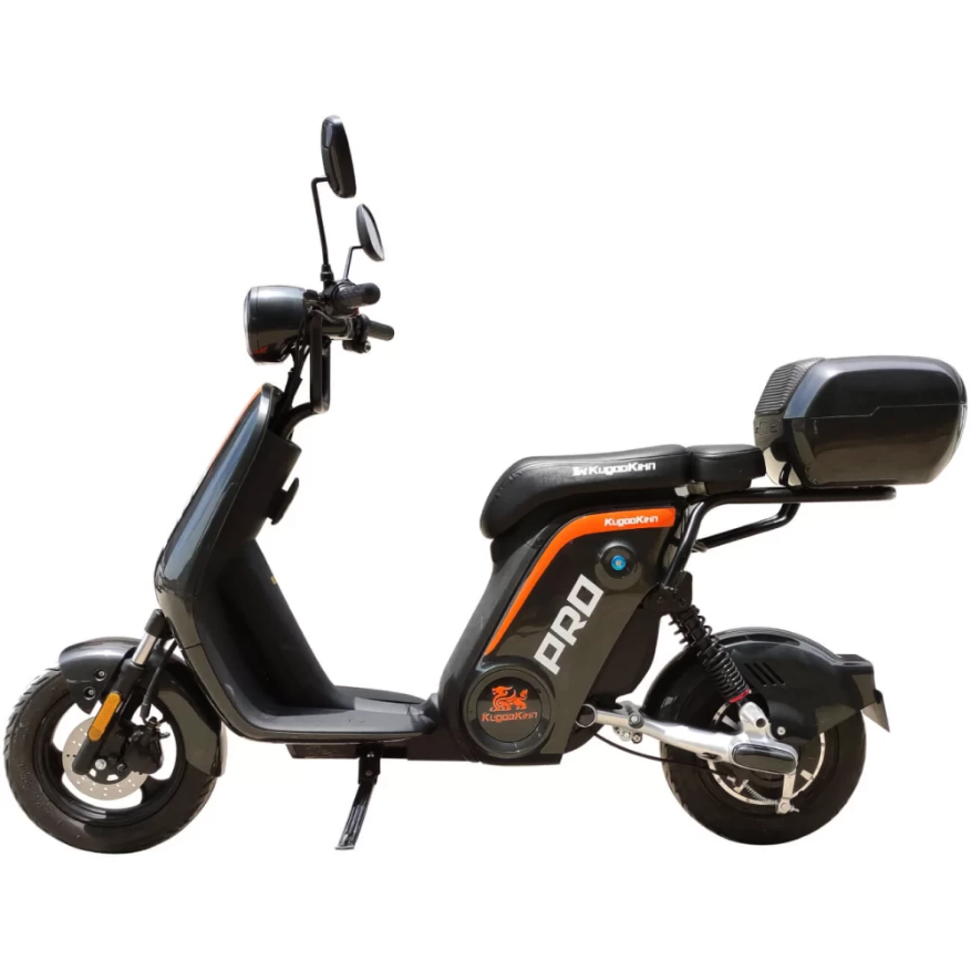 ЭЛЕКТРОСКУТЕР KUGOO V PRO 17.8 AH - мощный электроскутер в черном цвете выглядит серьезно и устрашающе в сравнении с предыдущей линейкой тс. Переливающееся под солнечными лучами лакокрасочное покрытие с брендовой надписью нравится продвинутым райдерам и новичкам. Модель, изготовленная с учетом пожеланий пользователей и наблюдений производителя, стала лидером продаж этого года. Купить электробайк выгодно, по приемлемой стоимости предлагает наш интернет-магазин.