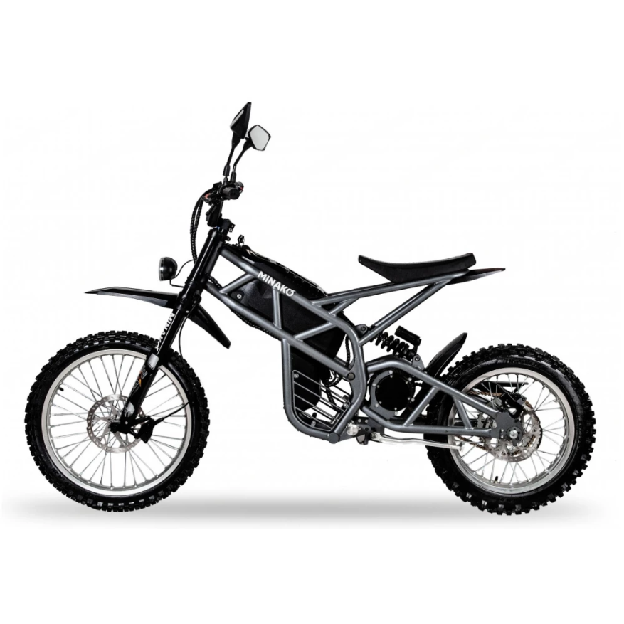 Электроскутер Minako CROSS в черном цвете визуально напоминает крутую технику, современный мопед. Привлекает внимание большая светодиодная фара и мощная рама. Дизайн подчеркивает лучшие технические характеристики. Купить электровелосипед на выгодных условиях, остаться довольными приобретением предлагает наш интернет-магазин. Техника оснащена мощным мотором на 3000 Вт, способными выжимать скорость до 100 км/час. Наличие педалей допускает езду в смешанном режиме. Емкости батареи (20000МАч) достаточно на преодоление дистанции до 100 км. Батарея размещена на раме, в защитном боксе, исключающим повреждение АКБ. С такими параметрами потребуется покупка защитных аксессуаров для ездоков. Колеса с агрессивным протектором обещают отличный накат и сцепляемость с разными видами покрытия. Допускает езду по ровной и пересеченной местности. Небольшое анатомическое седло, удобная рулевая часть с максимальным функционалом увеличивают уверенность райдера в собственных действиях. Информационный дисплей показывает важные для ездока параметры, исключает непредвиденные ситуации в виде разрядк