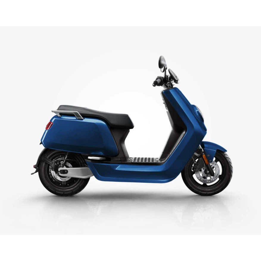 Электроскутер NIU N1 Series (Синий) - стильный заднеприводный байк со светодиодной оптикой. Его компактные размеры позволяют легко лавировать между машинами на дороге. Для пассажира есть удобные складывающиеся подножки, ручки и спинка. На приборной панели видны основные показатели - спидометр, заряд батареи в процентах, режим передач. Под данной приборной панелью расположен USB-порт для зарядки гаджетов, есть отсек для телефона. Под сиденьем есть багажник. Максимально заявленная скорость - 60км/ч. Питается двигатель этой модели от литий-ионной батареи, которая расположена внизу под ногами у водителя. Стоит зарядить аккумулятор 3 часа, и вы будете иметь возможность проехать до 70км. Вес аппарата 57кг, грузоподъемность 160кг. Благодаря подвеске на NIU N1 Series можно легко преодолеть небольшие кочки. На центральной подножке электроскутер стоит уверенно на парковке. Управлять данным мопедом очень легко, все рычаги управления расположены эргономично. Огромные плюсы модели NIU N1 Series - бесшумность и быстрый разгон. На таком транспортном средстве можно ездить по паркам, поскольку оно не выделяет вредных выхлопных газов.