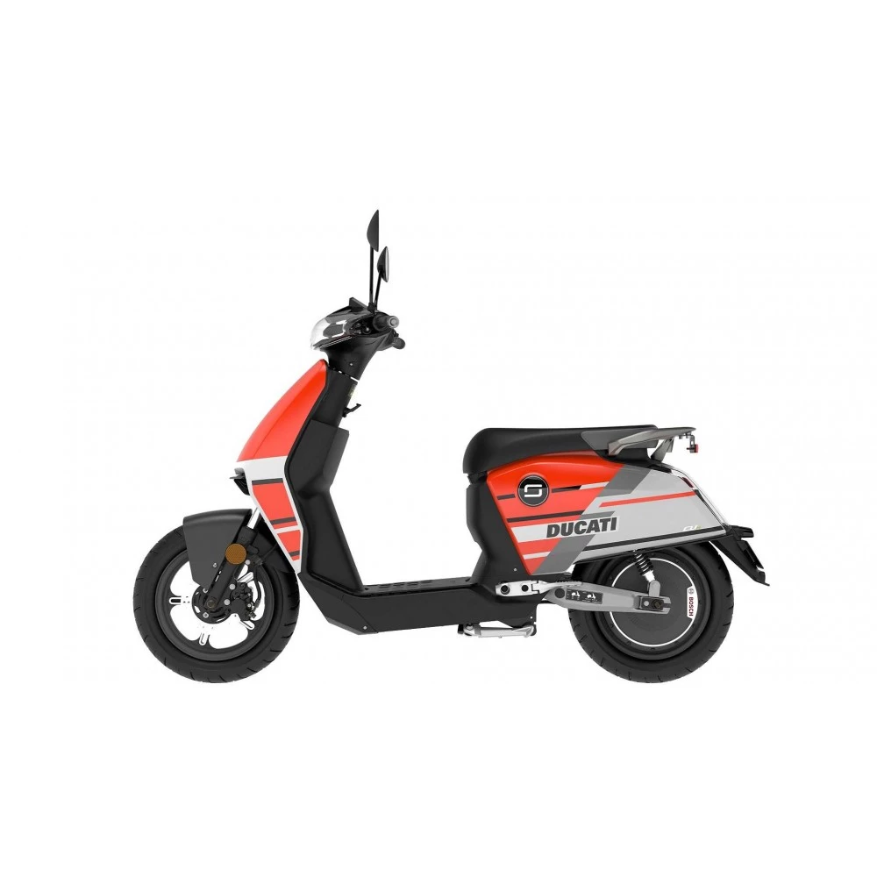 Электроскутер SUPER SOCO CUX DUCATI - современный электроскутер от бренда SUPER SOCO и известного итальянского производителя мотоциклов DUCATI. Скутер оснащен батареей на 30 Ah, что позволяет на одном заряде проехать до 75 км. Съемный аккумулятор, что очень удобно. Можно заряжать его отдельно. Время быстрой зарядки всего 3,5 часа. Что является большим преимуществом. Мощный двигатель Bosch позволяет быстро ускоряться. Электроскутер SUPER SOCO CUX DUCATI имеет светочувствительные фары, которые обеспечивают отличную видимость на дороге. На передней панели в высоком качестве отображается вся необходимая информация в простой и понятной форме. Многофункциональный дисплей с подсветкой вовремя подстроится под условия освещения так, что и в темное время суток будет видна вся необходимая информация. Под сиденьем находится отсек, в котором располагается аккумулятор и отсек для хранения вещей. Крышка сиденья открывается беспроводным ключом. Поэтому ваши вещи будут в полной безопасности. Электроскутер SUPER SOCO CUX DUCATI современный и маневренный. Позволит с легкостью передвигаться по городу, во дворах и на узких улицах. Это отличный выбор для движения в плотном городском потоке.