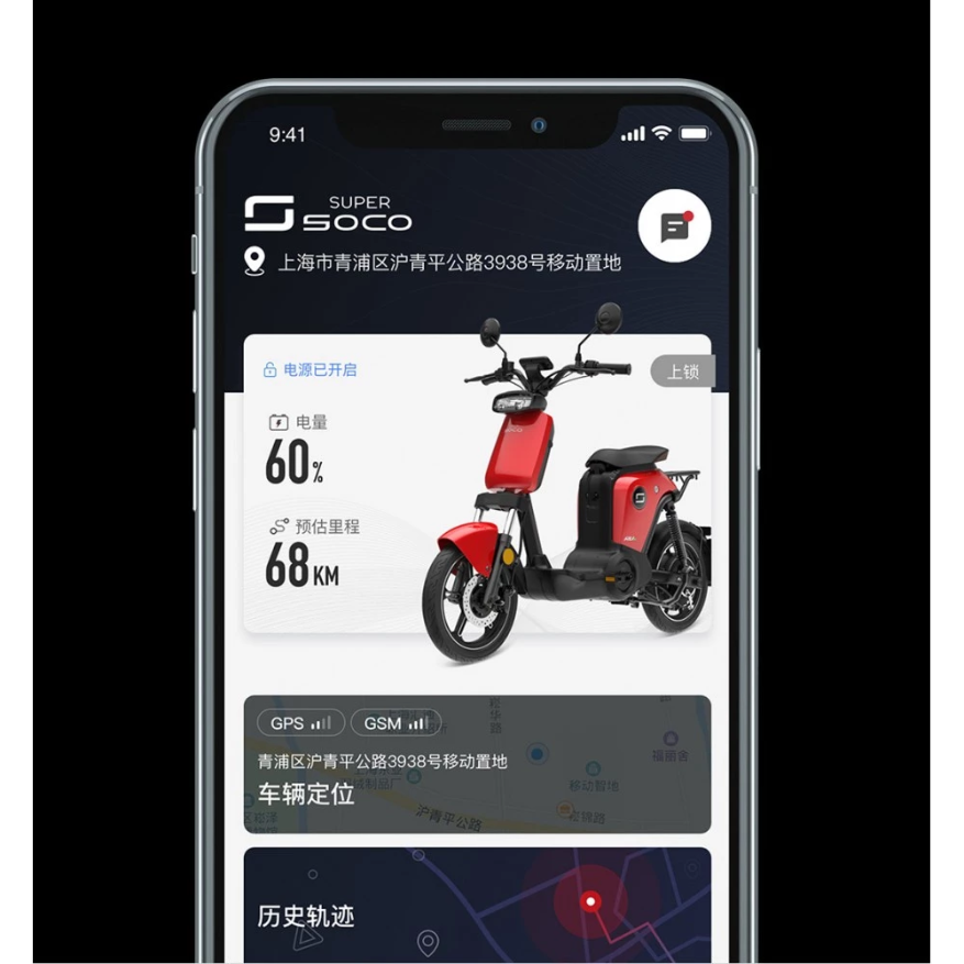 Электроскутер SUPER SOCO RU современное транспортное средство, которое дает возможность с комфортом передвигаться по городу. Вам не придется стоять в пробках и тратить свое драгоценное время. Двигатель мощностью 650 Вт позволит набрать скорость до 35 км/ч. Запас хода 40 км. Яркий фонарь скутера освещает дорогу на 25 м. На переднем и заднем колесе располагаются светоотражающие фонари. Поэтому движение в темное время суток безопасно. Под сиденьем находится аккумулятор. Его можно вытащить и зарядить при необходимости. Но даже если вы не рассчитали запас энергии и аккумулятор сел, то вы можете продолжить движение. Главной особенностью электроскутера SUPER SOCO RU является наличие педалей. Крутите педали, и продолжайте движение. За сидением располагается вместительный багажник. Для вашего удобства установлена двойная выдвижная ножка. Это не даст скутеру завалиться во время стоянки. Также стоит отметить, что электроскутер SUPER SOCO RU имеет функцию GPS позиционирования. В случае если в незнакомом вам районе вы забыли где, припарковали свой скутер, вы всегда по карте сможете найти где он находится. В комплекте с электроскутером идут 2 пульта. С помощью пульта можно блокировать колеса и управлять сигнализацией.