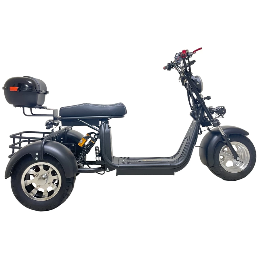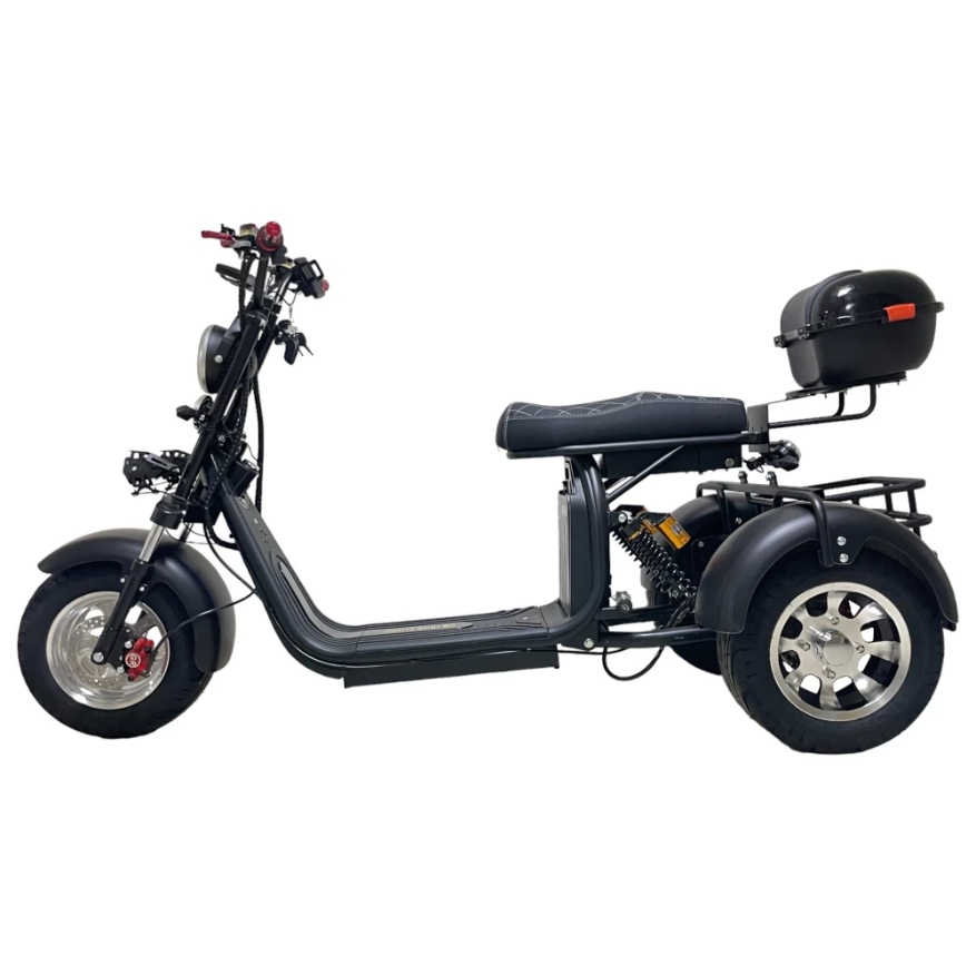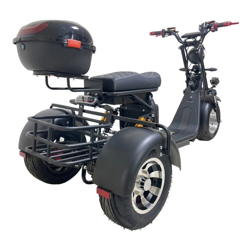 Откройте для себя мир стиля и комфорта с электроскутером трехколесным CITYCOCO GT X11 PRO TRIKE 2024 в матовом черном цвете. Этот мощный скутер развивает скорость до 50 км/ч и способен преодолеть до 40 км на одном заряде благодаря аккумулятору емкостью 20 Ah и мотору мощностью 3000 Вт. С диаметром колес 18 дюймов и максимальной нагрузкой 250 кг, он идеально подходит для городских поездок. Кофр за сиденьем и большая корзина между задними колесами обеспечат удобство перевозки вещей. Освещение из большой передней фары, поворотников и стробоскопов гарантирует вашу безопасность на дороге. Амортизация спереди и сзади, складные подножки для заднего пассажира и большая платформа для ног делают этот скутер отличным выбором для тех, кто ценит комфорт и стиль.