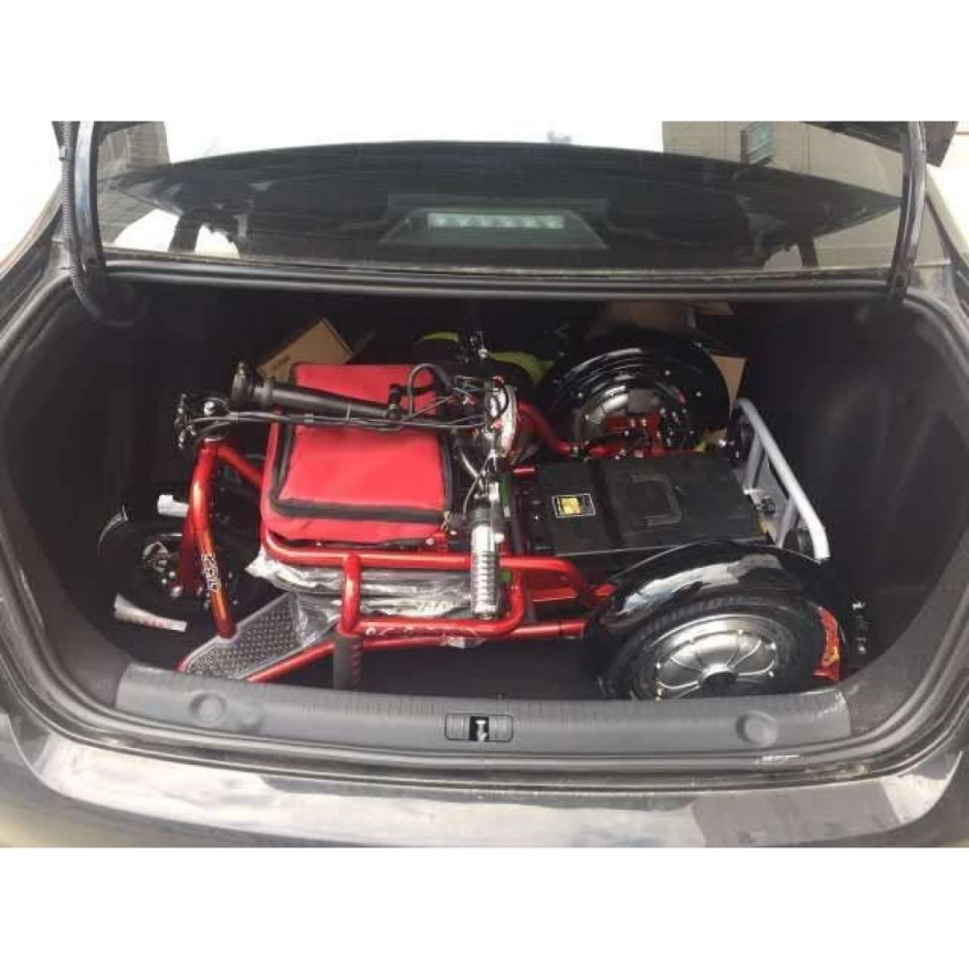 Колесная часть Адьютанта – 10-12-дюймовая. Общий вес – 30 кг. Двигатель мощностью- 700 Вт. При указанных характеристиках трицикл способен разгоняться до скорости 25 км/час и преодолевать на одной подзарядке 35-40 км.