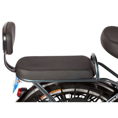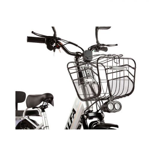 Электровелосипед e-ALFA воплощение функциональности и комфорта. Удобное широкое сиденье с регулировкой высоты, вместительная багажная корзина на руле и задний багажник, который из мягкого сиденья со спинкой для перевозки пассажиров трансформируется в широкую платформу для габаритных грузов.