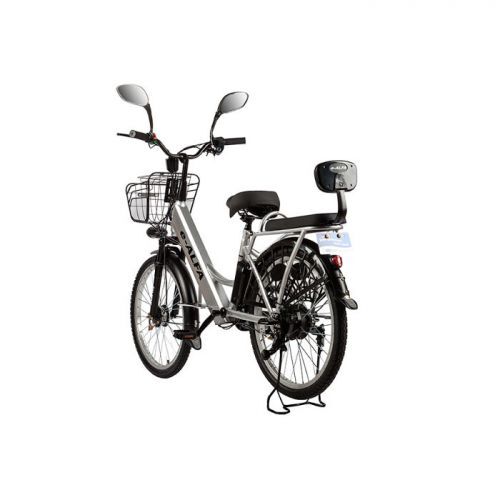 Эта модель электровелосипеда отличается завидной выносливостью и способна спокойно перевозить до 130 килограммов груза, включающих седока и поклажу. Дополнительный комфорт обеспечивают передняя вилка-амортизатор, защитный кожух на цепи, полноразмерные защитные крылья с брызговиками, передняя фара и задний габаритный фонарь, а также мощная центральная подножка, которая позволит запарковать велогибрид вместе с закрепленным на заднем багажнике грузом.