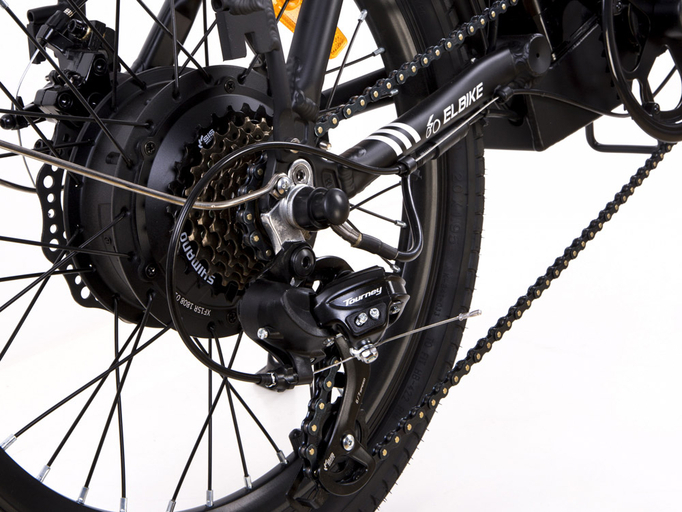 Электровелосипед Elbike Galant Vip 500W можно использовать, как обычный, – ездить на педалях. Он оснащен задним переключателем Shimano Altus M310 и имеет 7 скоростей. Ездить также можно в режиме скутера (ручка газа) и совместно с мотором (5 уровней PAS). На силовом проводе есть разъем для быстрого демонтажа заднего колеса. Гашетка заблокирована от случайного нажатия.