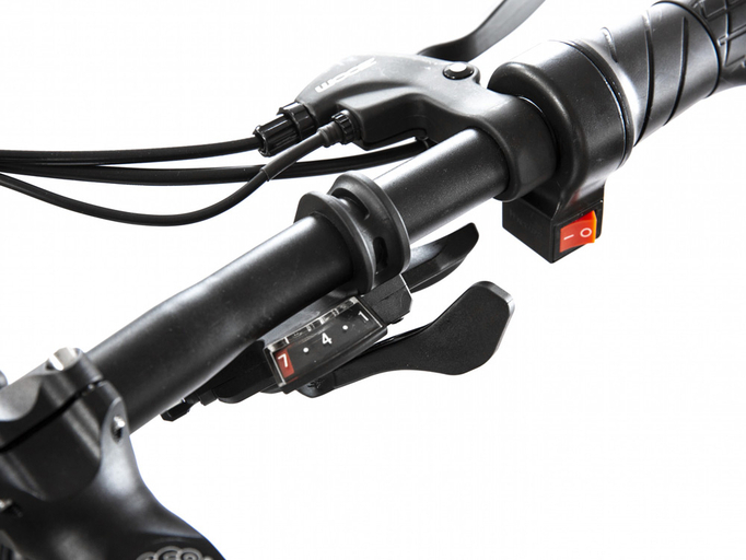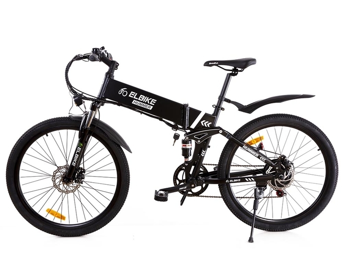 Elbike Hummer St – электровелосипед, оборудованный редукторным электромотором MXUS мощностью 350 Вт и аккумулятором на 10 Ач, 36 В. Электрический велосипед обладает двухподвесной конструкцией и 26-дюймовыми колесами, поэтому на нем можно ездить по асфальту и бездорожью. На руле расположен светодиодный дисплей с 3 уровнями поддержки педалирования. Есть возможность выбора скоростного режима (8, 18 и 32 км/ч). На одном заряде АКБ можно проехать до 40 км и до 75 км в смешанном режиме. Быстросъемная батарея встроена в раму.