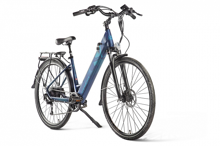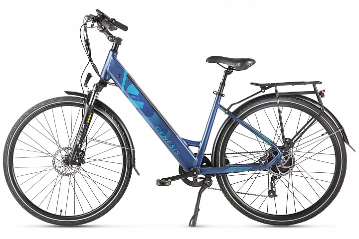 Электровелосипед Eltreco Genesis Pro маневренный и легкоуправляемый гибрид для поездок. Разработан в Канаде. Уверенно держит дорогу. Тормоза у велогибрида дисковые гидравлические, слаженно и чётко реагируют на запрос торможения. Есть дисплей, который отображает всю необходимую информацию, включая доступные 9 скоростей. Аккумулятор съемный 36B 10,4Ah. Вес велосипеда составляет 25 кг.