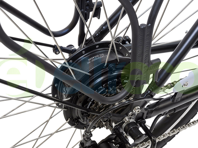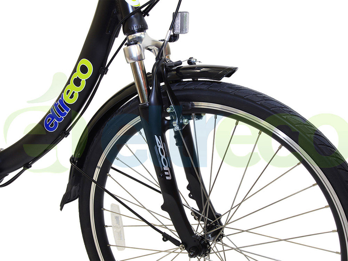 Eltreco Vector 500W – электровелосипед новейшей модификации, выпуском которого разработчики ознаменовали начало велосезона 2017. Его главное отличие – мощный 500-ваттный двигатель Bafang (48 В), позволяющий динамично стартовать, разгоняться до 35 км/ч (в зависимости от комплекции райдера и качества дорожного полотна) и уверенно преодолевать подъемы. Питание мотора обеспечивает емкий литий-ионный аккумулятор Samsung (48 В, 10,4 Ач), один заряд которого дает возможность перемещаться на расстояние до 35 км.