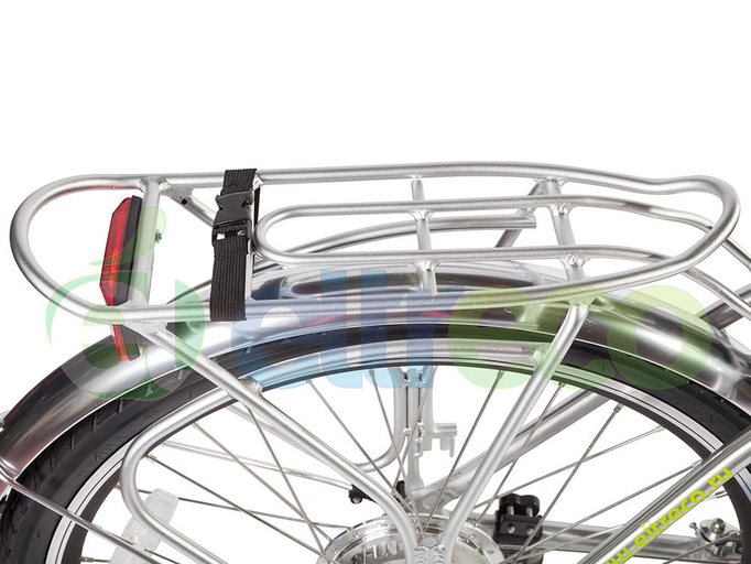 Велогибрид Eltreco Vector 500W оснащен 26-дюймовыми колесами с двойными ободами, «обутыми» в антипрокольные покрышки 1,75". Вместее с передней пружинно-эластомерной вилкой это дает отличную амортизацию и проходимость в черте города и на утоптанной грунтовке. Электробайк укомплектован мягким эргономичным седлом, полноразмерными крыльями, защитой цепи и багажником из алюминия. Передвигаться в темное время суток безопасно благодаря яркой головной LED-фаре и задним габаритам. Достоинства байка подчеркивают великолепные цвета – черный и серебристый.