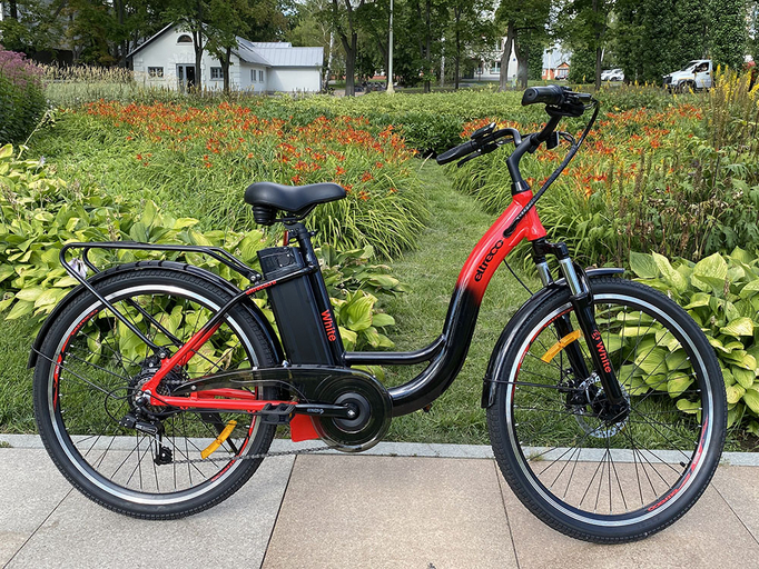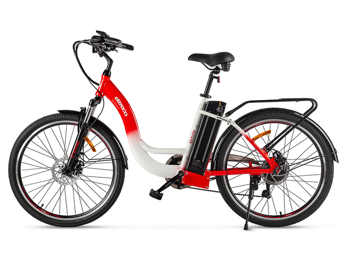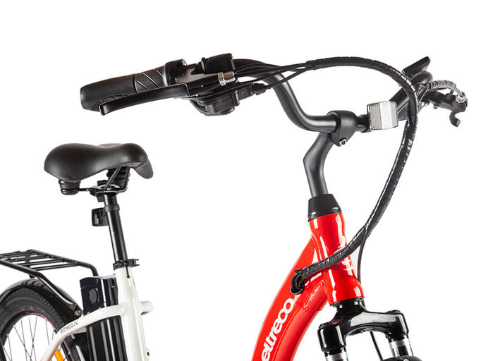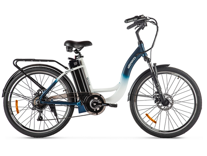 Eltreco White – новинка 2021 года от российского производителя электротранспорта Eltreco. Классический городской электровелосипед с простой в исполнении и надежной конструкцией позволит совершать длительные прогулки по городским улицам и паркам. Модель имеет заниженную раму и удобный изогнутый руль, что обеспечивает прямую и комфортную посадку. Легкая и прочная рама изготовлена из качественного алюминиевого сплава и рассчитана на максимальную нагрузку до 120 кг. В передней части рамы установлена амортизационная вилка, сглаживающая дорожные неровности.