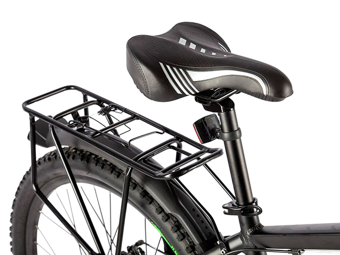 - Быстросъемный литий-ионный аккумулятор (36 В, 10 Ач). Изящно интегрирован в раму и практически сливается с ней, благодаря чему малозаметен. Пробег на одном заряде АКБ – до 50 км.