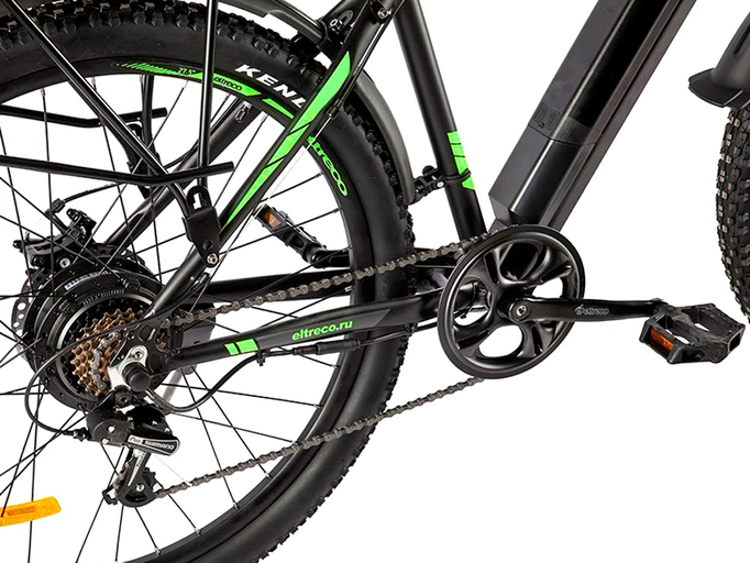 - Фирменный электромотор Eltreco (350 Вт, установлен сзади). Максимальная скорость – до 40 км/ч.