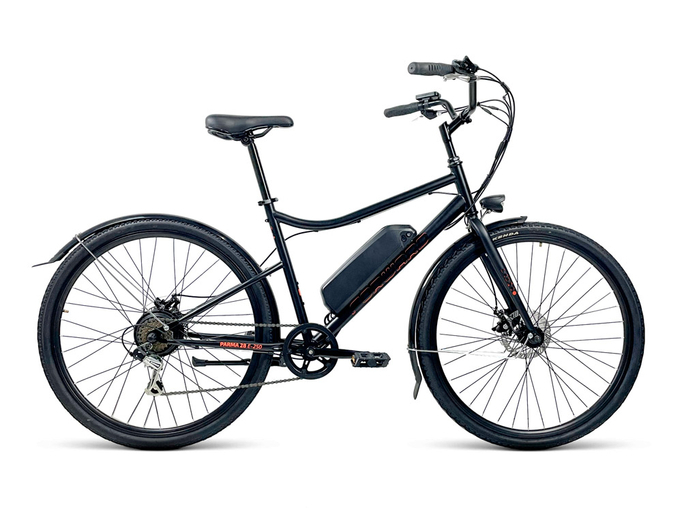 Велогибрид Parma 28 E-250 укомплектован полноразмерными крыльями, передней фарой и задним габаритным огнем.