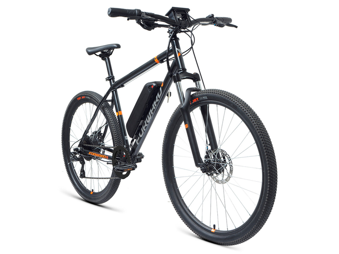 Горный электровелосипед Forward Volcano Plus 27,5 2.0 Disc 500W – универсальная модель для пользователей обоих полов. На нем можно ездить по асфальту, грунтовке и бездорожью. Электрический двигатель обладает мощностью 500 Вт. Аккумулятор имеет емкость 12 Ач и напряжение 48 В.