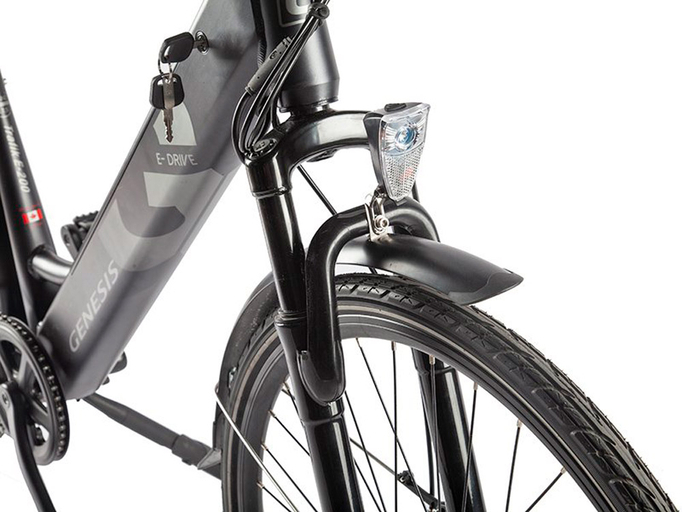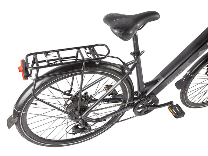 Genesis – электровелосипед для города и шоссе, собранный на заниженной алюминиевой раме. Оснащен большими 28-люймовыми колесами. Сзади расположен крепкий металлический багажник.