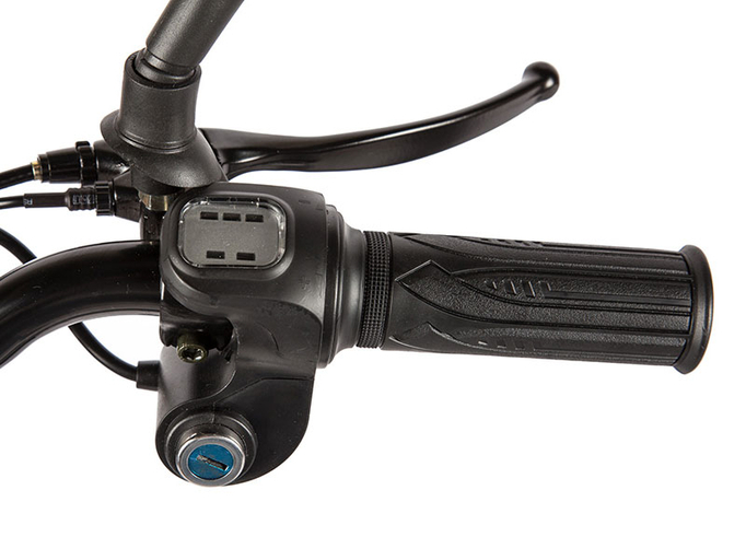 - АКБ 48 В, 10,4 Ач (скрыта в раме). Для подзарядки предусмотрен герметичный закрывающийся разъем. Легко доставать для зарядки от стационарной сети напряжением 220 В;