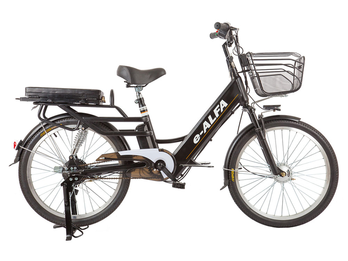 Green City e-ALFA L – электровелосипед, сочетающий все характеристики «младшего брата» и дополненный двумя амортизаторами под задним багажником для еще более комфортной эксплуатации. В основе конструкции модели – высокопрочная нескладная стальная рама с заниженной трубой, внутри которой скрыт 48-вольтовый литиевый аккумулятор емкостью 9 Ач. Батарея надежно защищена от ударов и повреждений, влаги и грязи, и не мешает движению. Контроллер мотора расположен на стойке подседельного штыря, а двигатель мощностью 350 Вт встроен в ступицу заднего колеса. Такие характеристики наделяют электротранспорт отличным потенциалом, позволяя ему резко и динамично разгоняться до 35 км/ч на электротяге, уверенно покорять подъемы в горку и преодолевать до 35 км на одном заряде.