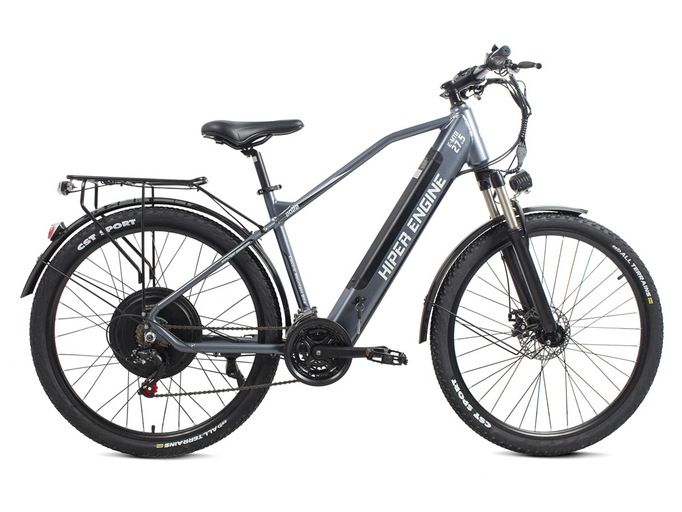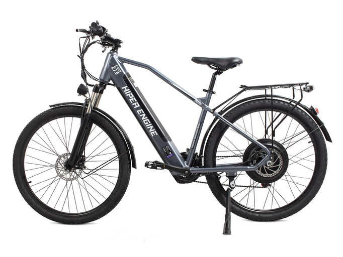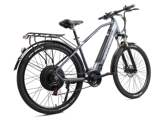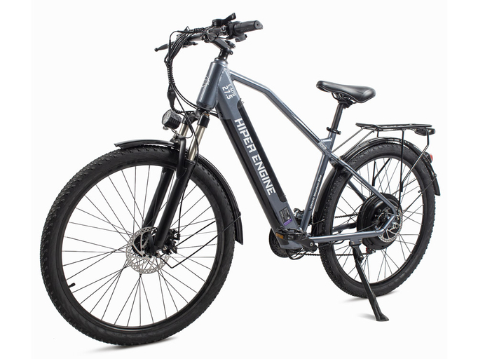 Электровелосипед HIPER Engine MTB X1 – стильный, мощный и быстрый электробайк демонстрирует отличные ходовые возможности и в городе, и на бездорожье. Собран на прочной и одновременно легкой алюминиевой раме, выдерживает максимальную нагрузку до 130 кг. Универсальные покрышки диаметром 27,5 дюймов обеспечивают хорошее сцепление с дорожным покрытием. Передняя амортизационная вилка сглаживает неровности, делая ход плавным.