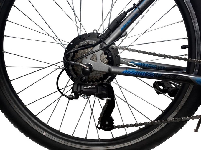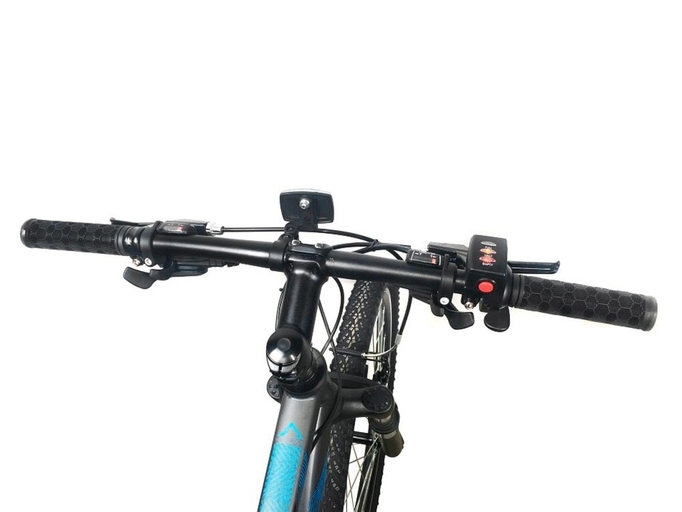 На электрическом маунтбайке установлен редукторный электродвигатель от бренда MXUS номинальной мощностью 500 Вт и максимальной мощностью 960 Вт. Электрический мотор позволяет с легкостью подниматься в гору и разгоняться на велосипеде до максимальной скорости 35-38 км/ч в зависимости от нагрузки и ветра. Электродвигатель имеет маркировку 250 Вт. Емкая литий-ионная аккумуляторная батарея LG 48 В 12.8 Ач питает мотор байка.