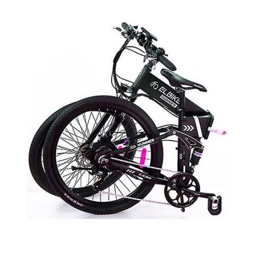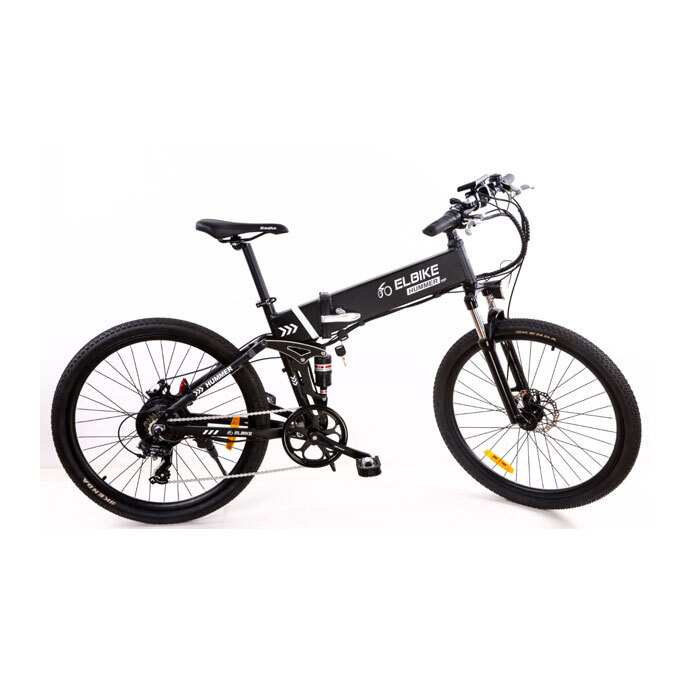 Электровелосипед Hummer Vip 350 Вт - горный складной электровелосипед-двухподвес с колёсами 26" и мощностью в 500 Вт. Имеет литиевый ёмкий аккумулятор, встроенный в раму с возможностью быстрого извлечения. Позволяет преодолевает расстояние до 90 км (с помощью педалей). Его удобно складывать, что позволяет без проблем перевозить велосипед в багажнике автомобиля. Прекрасная проходимость по дорогам любого качества, в том числе и бездорожью.