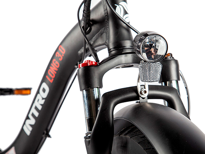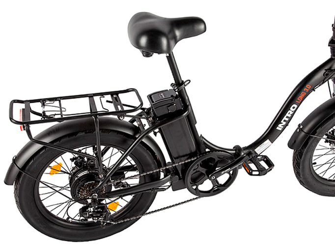 INTRO Long 3.0 – электровелосипед с универсальными характеристиками, который подойдет и для поездок по городу, и для умеренного бездорожья. Он более изящный, в отличие от брутальных «мужских» фэтбайков. Собран на легкой и одновременно прочной алюминиевой раме и имеет складную конструкцию, что существенно упрощает его хранение в помещении и транспортировку. Широкие колеса 20"x3.0" позволяют уверенно перемещаться по различному ландшафту. Передняя амортизационная вилка сглаживает дорожные неровности. Надежные дисковые механические тормоза 160 мм гарантируют четкое своевременное торможение. Базовая комплектация включает задний багажник, переднюю светодиодную фару и задний фонарь, полноразмерные металлические крылья, подножку.
