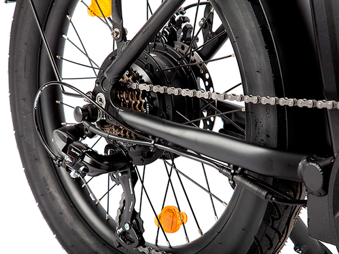 - Привод на заднее колесо. Электромотор мощностью 500 Вт.