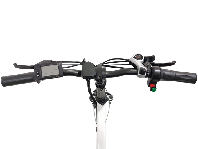 Езда на электробайке возможна в трех режимах: электротяга, педали и PAS-режим (помощь мотора в процессе педалирования). Спереди и сзади установлены светодиодные фары для безопасного передвижения в темное время суток. Велогибрид оборудован надежной дисковой механической системой тормозов. На руле расположен USB-порт.