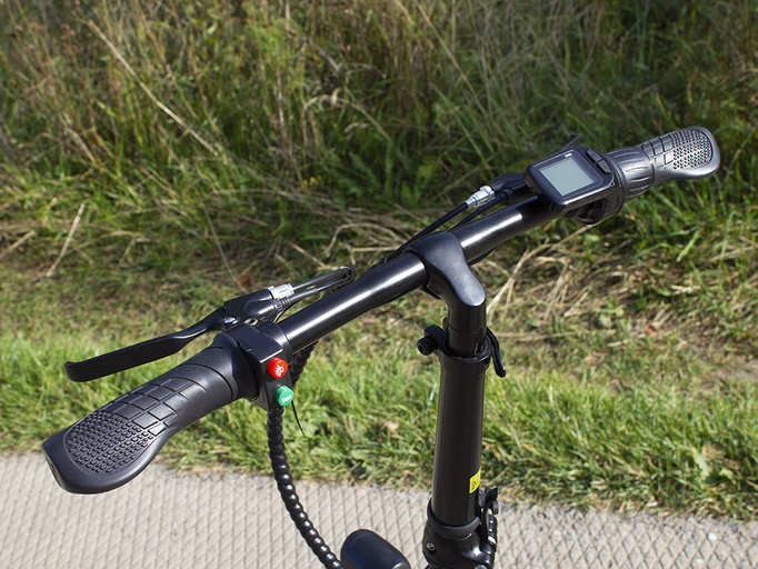 Мини велогибрид оборудован передней LED-фарой и задним габаритным огнем для безопасной езды в темное время суток, надежными дисковыми тормозами, крыльями с брызговиками. На руле расположен велокомпьютер с LCD-дисплеем, отображающим информацию о скорости, пробеге, остаточном заряде, уровне ассистента.