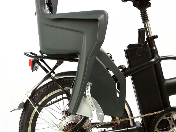 В базовую комплектацию входят светодиодная фара и стоп-сигнал, крылья, багажник, стояночная подножка. Дополнительно можно установить детское кресло.