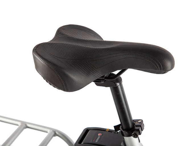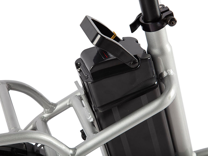 Велосипедный гибрид обладает алюминиевой конструкцией. Рама электротранспорта выдерживает пользователя с максимальным весом до 130 кг. Модель обладает полным весом, составляющим 23,4 кг. На заднем багажнике пользователь может возить пассажира или перевозить груз.