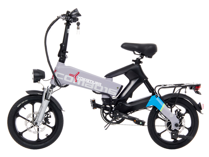 Yokamura Combo 16 (Grey Black)– функциональный и городской электровелосипед от японского бренда Yokamura. Аккуратная сборка и стильный современный дизайн – достоинства модели. Велосипед имеет легкую раму из магниевого сплава, что обеспечивает ему невысокий вес и максимальную надежность. Рама, руль и педали – складные. Руль и сиденье регулируются по высоте.