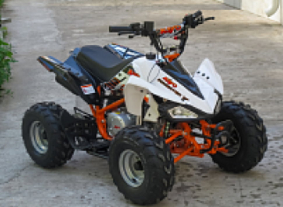 Квадроцикл Kayo Predator – модель начального уровня, рассчитанная на управление юными райдерами от 6 лет и старше. Аппарат оснащается 4-тактным мотором с воздушным охлаждением и рабочим объемом 110см3, развивающим мощность в семь с половиной лошадиных сил. Такие характеристики двигателя позволяют квадроциклу справляться с нагрузкой до 140 кг.