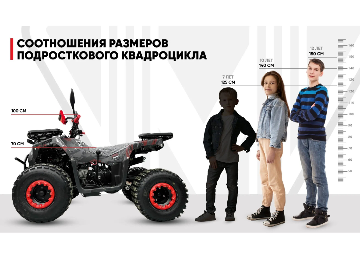 Стальной каркас черного цвета придает квадроциклу прочность и долговечность. Высота по сидению составляет 700 мм, что подходит для подростков ростом от 110 до 145 см. С максимальной скоростью до 60 км/ч и грузоподъемностью до 140 кг, Grizlik Premium 125 способен справиться с различными задачами. Дорожный просвет в 220 мм позволяет преодолевать препятствия и ездить по пересеченной местности без затруднений.