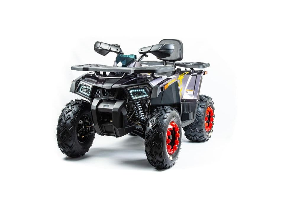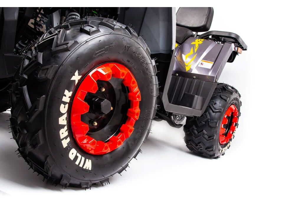 MOTOLAND 200 WILD TRACK X PRO имеет прочную стальную раму, которая вместе с независимой передней подвеской на двух амортизаторах и моноамортизатором на задней подвеске обеспечивает высокий комфорт и управляемость. Гидравлические дисковые тормоза спереди и сзади гарантируют надежное торможение в любых ситуациях. Литые легкосплавные диски с шинами R10 добавляют не только устойчивости, но и стильный внешний вид.