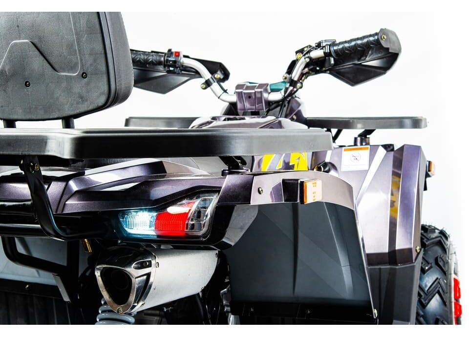 Трансмиссия квадроцикла представлена вариатором с реверсом и цепным приводом, что делает управление плавным и удобным. Переключение скоростей осуществляется в режимах F-N-R, что позволяет уверенно чувствовать себя на любых участках дороги. Максимальная скорость модели составляет 70 км/ч, что идеально подходит для активного отдыха и ежедневного использования.