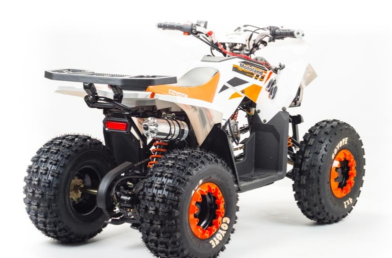 Motoland Coyote 125 - cтильный,современный, универсальный квадроцикл подойдет вашему ребенку, как мальчику так и девочке. Утилитарный дизайн Motoland Coyote 125 разработан с учетом вкусов современного поколения и понравится всем без исключения. Его 8-дюймовые колеса на хорошей внедорожной резине с легкостью преодолеют все преграды в виде грязи, песка, луж и кочек. А что еще нужно для веселых покатушек в выходные дни? У этого квадроцикла отличная управляемость в любых условиях эксплуатации,благодаря грамотной настройке подвески. Motoland Coyote 125 оснащен автоматической коробкой передач с реверсом, который установлен на усиленной раме, что дает уверенность в прочности конструкции. Ваш ребенок быстро овладеет навыками езды на данной технике и получит массу запоминающихся эмоций.