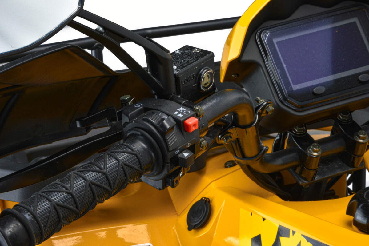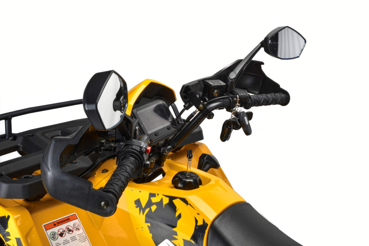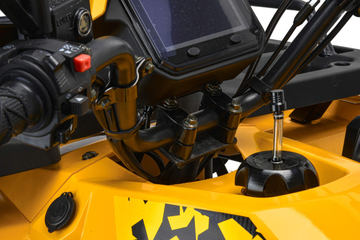 Эта модель уже оснащена двигателем 163 QMK на 200 см3 c воздушно-маслянным охлаждением, балансирным валом и автоматической коробкой передач с реверсом, гидравлическими дисковыми тормозами по переднему и заднему контуру, ручным и электростартером, LCD приборной панелью, зеркалами заднего вида, полностью светодиодной оптикой, мощным и большим передним и задним багажником, защитой для рук и USB зарядкой. Он отлично подойдет для семейного активного отдыха, а также для рыбалки и охоты. Вы получите незабываемые впечатления от вождения.