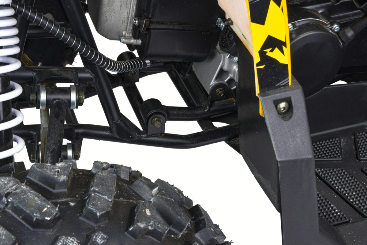 Квадроцикл 200 ALL ROAD X это улучшенная модель 200 ALL ROAD, которая сочетает в себе еще больше комфорта, при еще больших габаритах, простоту обслуживания и хорошую проходимость в самых разных условиях использования. Больше комфорта за счет подрамника двигатела на сайлентблоках, дополнительно установленного на основную раму квадроцикла, который гасит вибрацию с двигателя. Благодаря отлично настроенной подвеске, управление и передвижение на нем становится очень комфортным. Все неровности и кочки будут проглатываться без проблем, ведь на нем установлены колеса на 10 дюймов.
