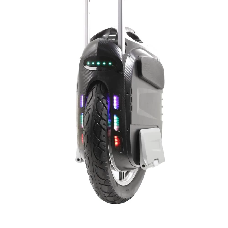 Литий-ионный аккумулятор имеет зарядное напряжение 100 вольт, хорошую емкость в 1230 Вт*ч, что дает большой запас хода на одном заряде. Агрегат может проехать до 150 км пути. Мощность двигателя 2000 Вт, моноколесо развивает максимальную скорость 55 км/ч. Оно резво трогается с места и имеет ровное ускорение без рывков. Колесо диаметром 19 дюймов, эластичный протектор резины улучшает сцепление с дорожным покрытием.