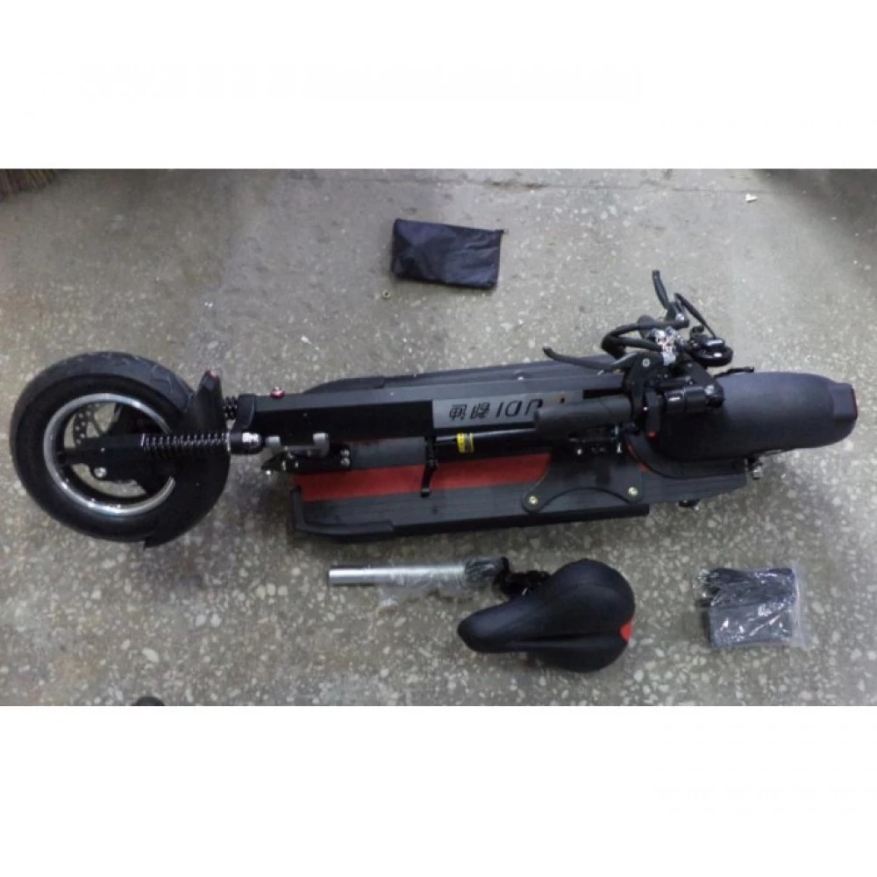 Модель самоката ERT-010 развивает максимальную скорость 40 км/ч. Очень хороший показатель, благодаря этому вы сможете достаточно быстро передвигаться. Мощность двигателя 350 Вт, угол подъема 25 градусов. Тормозная система установлена сразу на двух колесах, такую высокую скорость надо контролировать. Электросамокат ERT-010 легкий в управлении, плавно входит в поворот.