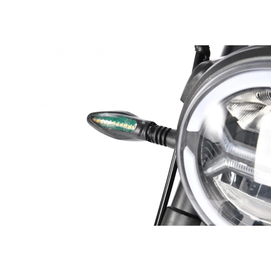 Конструкция выдерживает до 200 кг за счет прочного материала и широкой подножки. Быстро тормозит на любой дороге из-за задних гидравлических и передних дисковых тормозов. Система амортизации усилена по сравнению с прошлыми моделями этой серии. Поэтому дорога становится более комфортной.
